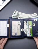 Conception à Grande Capacité : Avec 8 emplacements pour cartes destinés aux cartes de crédit ou de débit, 2 fenêtres d'identification pour une carte d'identité ou un permis de conduire, et 2 compartiments pour les billets, ce portefeuille offre une grande capacité répondant à vos besoins quotidiens. Il est idéal pour transporter des pièces de monnaie et des billets de banque.